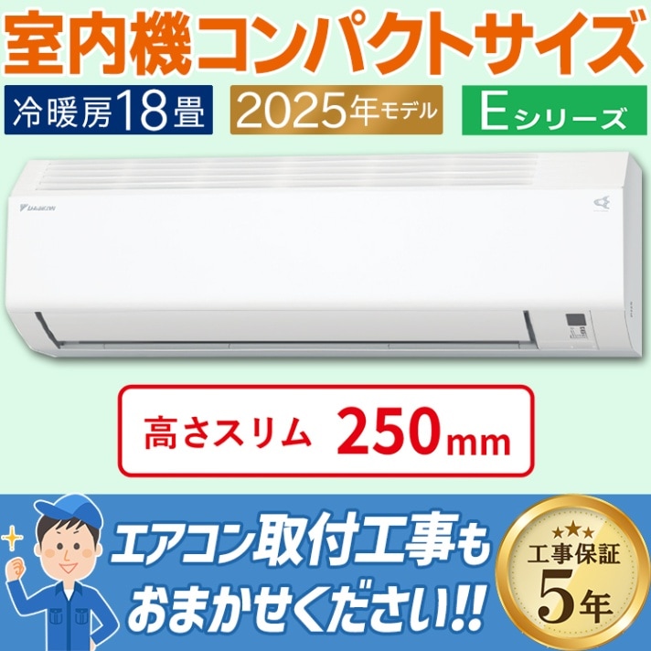 東京 神奈川地域限定 標準取付工事費込 エアコン同配 おもに18畳 ダイキン Eシリーズ ホワイト 2025年 コンパクト 自動運転 200V S565ATEP-W-TK