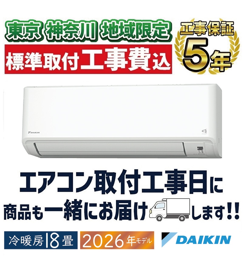 東京 神奈川地域限定 標準取付工事費込 エアコン同配 18畳用 ダイキン スゴ暖 2026年モデル HXシリーズ ホワイト 壁掛け 暖房 DAIKIN 単相200V S566ATHP-W-TK