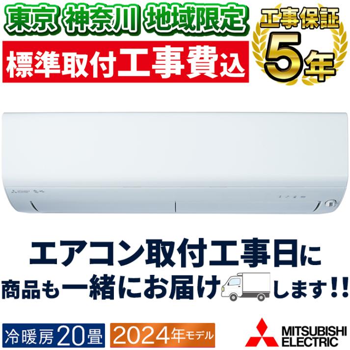 東京 神奈川地域限定 標準取付工事費込 エアコン同配 主に20畳 三菱電機 霧ヶ峰 2024年 モデル Zシリーズ ホワイト エコモテック 単相 200V MSZ-ZXV6324S-W-TK