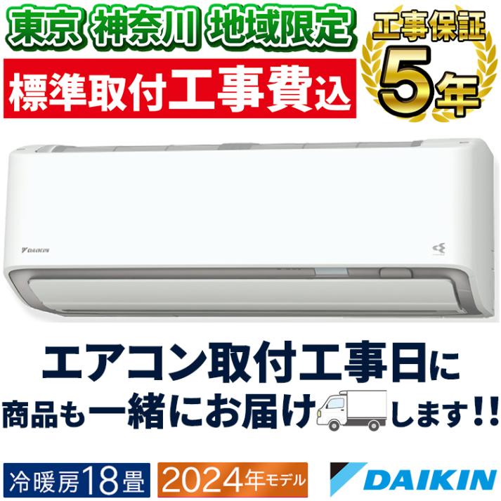 東京神奈川地域限定 標準取付工事費込 エアコン同配 主に18畳 ダイキン うるさら 2024年 モデル RXシリーズ ホワイト 快適 節電 単相200V S564ATRP-W-TK