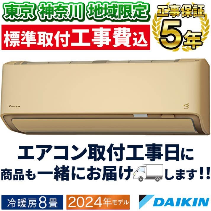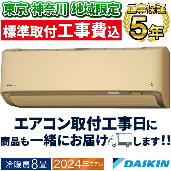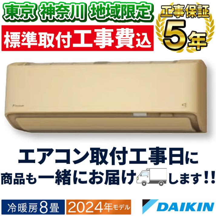 東京 神奈川地域限定 標準取付工事費込 エアコン同配 主に8畳 ダイキン 2024年 モデル AXシリーズ ベージュ 除湿 クリーン 快適 節電 単相100V S254ATAS-C-TK
