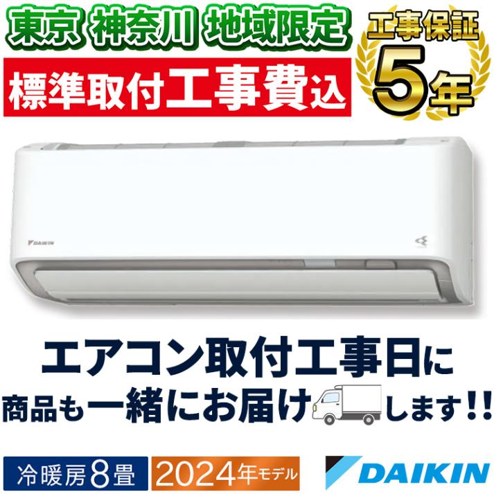 東京 神奈川地域限定 標準取付工事費込 エアコン同配 主に8畳 ダイキン 2024年 モデル AXシリーズ ホワイト 除湿 クリーン 快適 節電 単相100V S254ATAS-W-TK