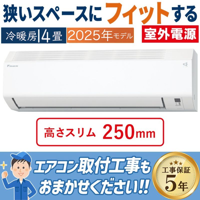 東京 神奈川地域限定 標準取付工事費込 エアコン同配 主に14畳 ダイキン 2025年モデル CXシリーズ ホワイト コンパクト 清潔 DAIKIN 単相200V S405ATCP-W-TK