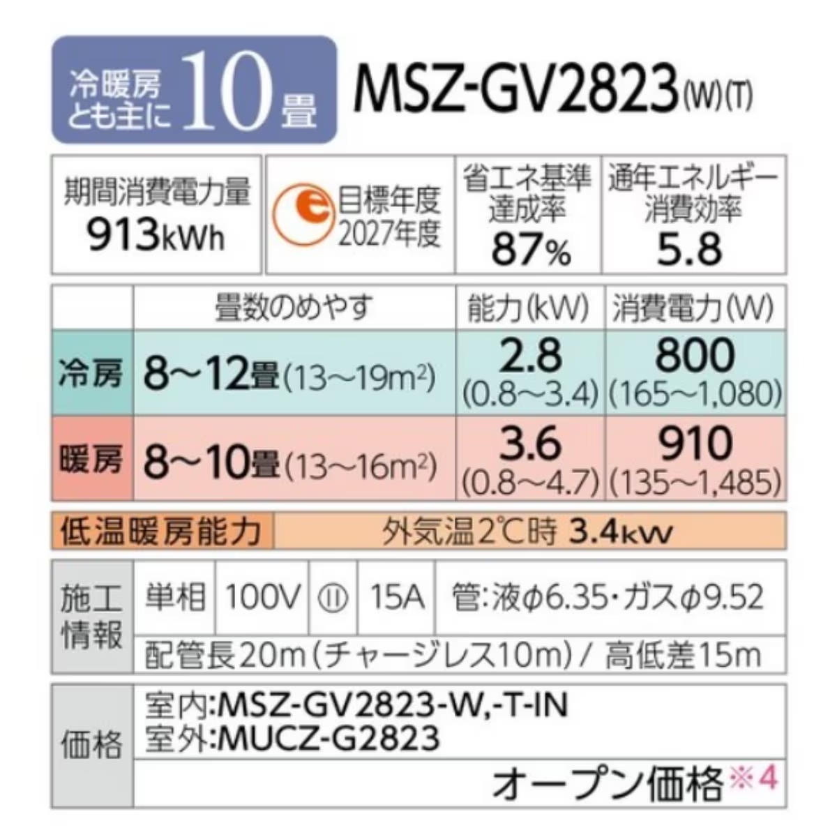 エアコン 主に10畳 三菱電機 2023年モデル GVシリーズ 霧ヶ峰 ルームエアコン ピュアホワイト 冷房 除湿 暖房 MSZ-GV2823-W