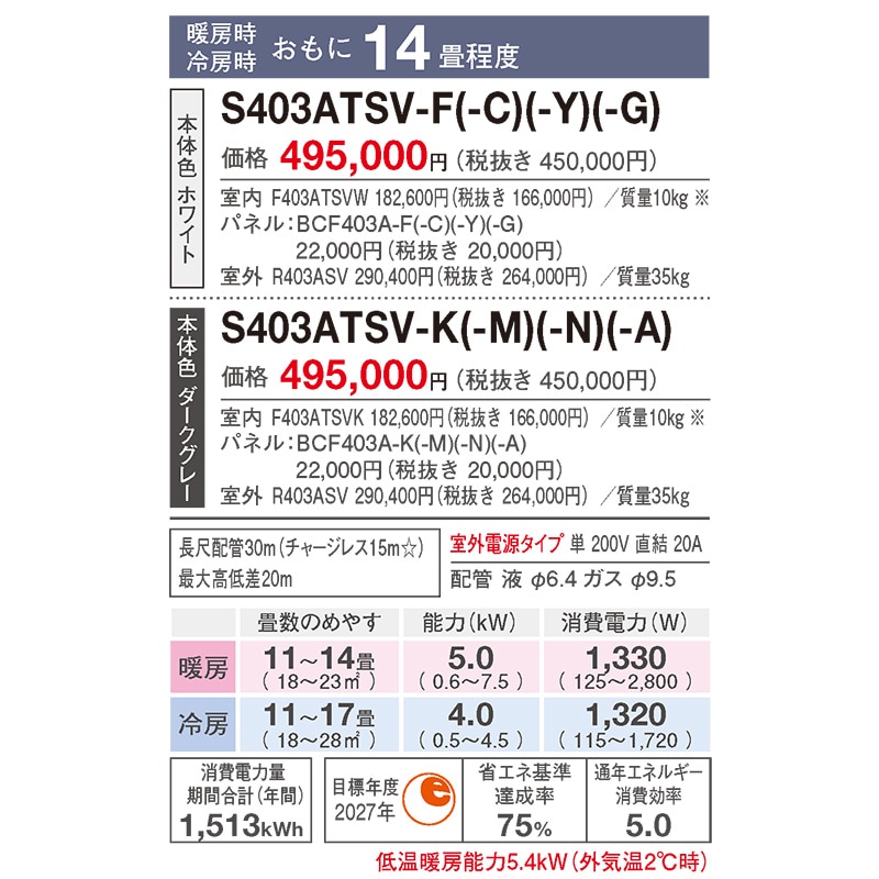 C283ALV 【室内機のみ】 ダイキン エアコン 主に10畳 ルームエアコン DAIKIN フリービルトイン 室外機別売り マルチエアコン室内機 2023年 モデル