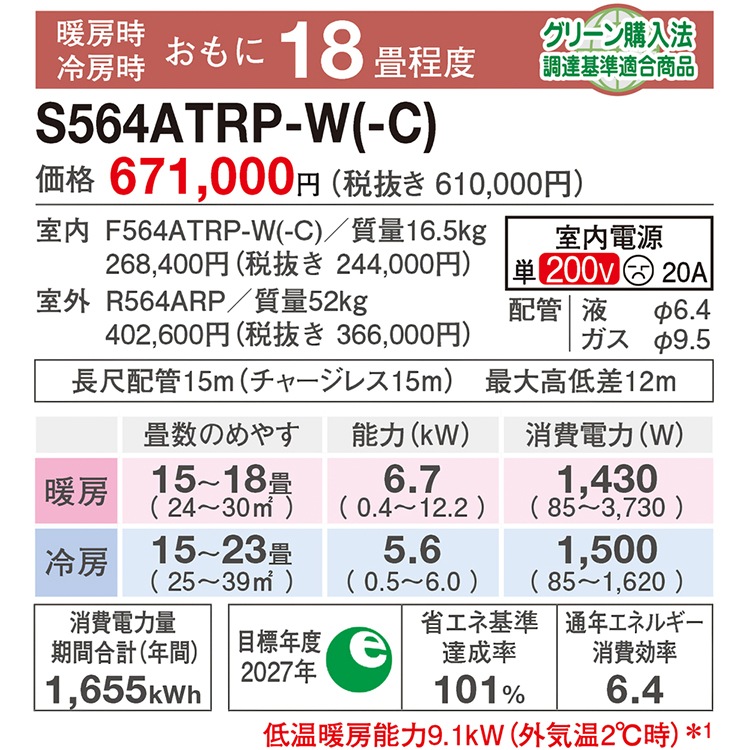 エアコン おもに18畳 ダイキン GXシリーズ 2024年モデル ストリーマ空気清浄 さらら除湿 単相200V S564ATGP-W