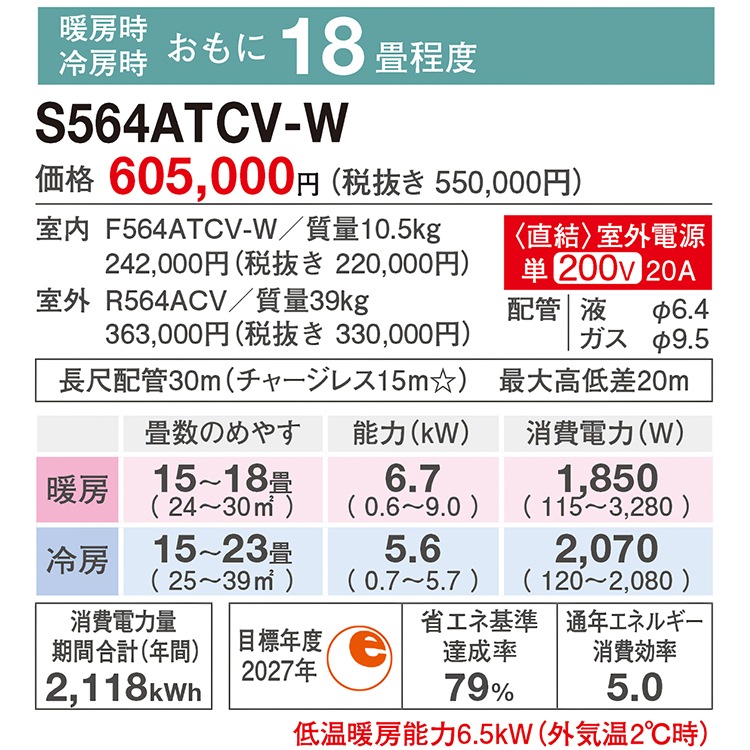 エアコン おもに18畳 ダイキン GXシリーズ 2024年モデル ストリーマ空気清浄 さらら除湿 単相200V S564ATGP-W