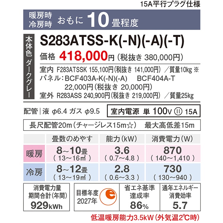 C283ALV 【室内機のみ】 ダイキン エアコン 主に10畳 ルームエアコン DAIKIN フリービルトイン 室外機別売り マルチエアコン室内機 2023年 モデル