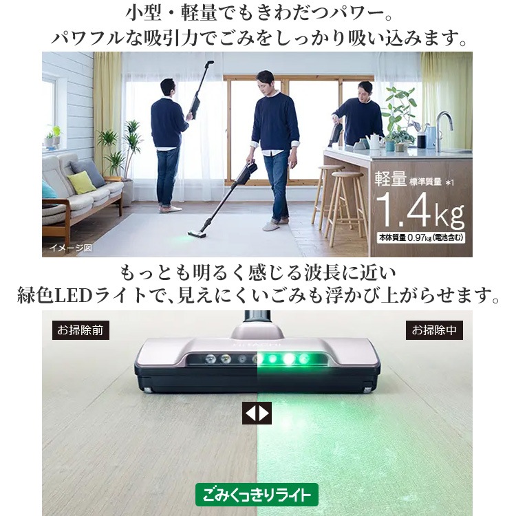 掃除機 日立 パワかるスティック コードレス スティッククリーナー サイクロン式 モーター式ヘッド 充電式 ライトゴールド PV-BL50L-N